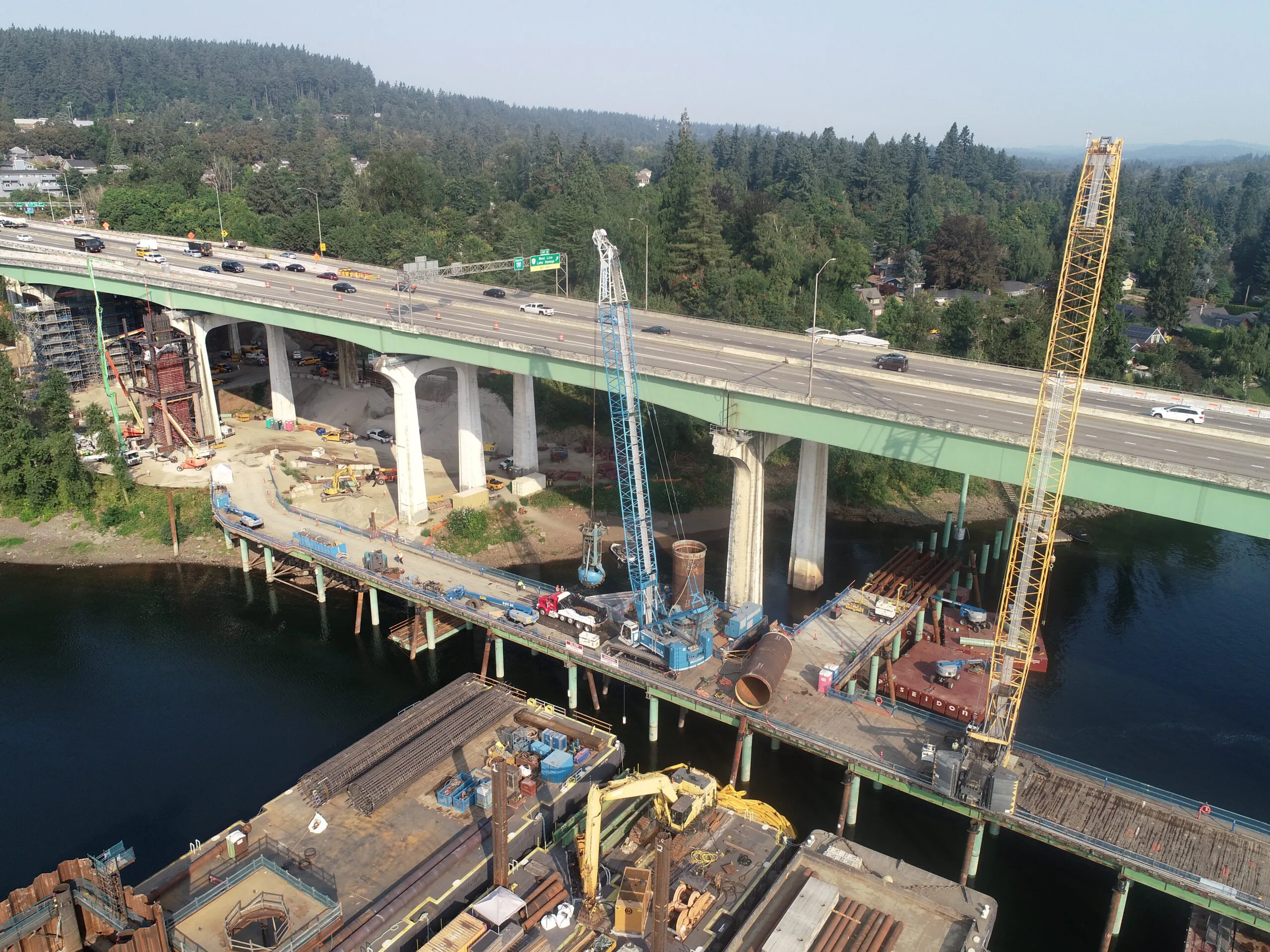 Las capacidades de grúas y levantamiento de Kiewit —en cantidad y capacidad— son incomparables en la industria de la construcción. Kiewit Foundations utiliza esta flota para atender distintas necesidades de cimentaciones donde y cuando surgen. Desde grúas de apoyo para trabajos de anclaje, hasta grúas de ciclo continuo equipadas para trabajos de vibro-reemplazo profundo, o grúas que soportan osciladores o plomos para trabajos de pozo y pilotes, Kiewit Foundations tiene la grúa adecuada, equipada con los accesorios óptimos.