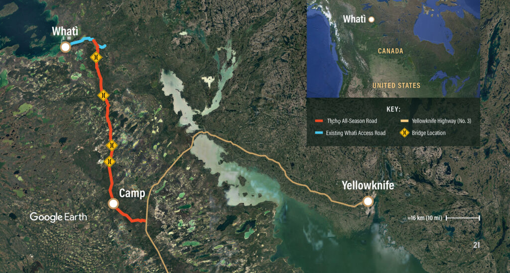“This road is the result of many years of planning, partnerships and hard work by former and present leaders and our collective governments,” said Tłı̨chǫ government Grand Chief George Mackenzie. “Our partnership with the GNWT and Kiewit has been a great success for our people and companies, and there is great potential for future projects in our region.”