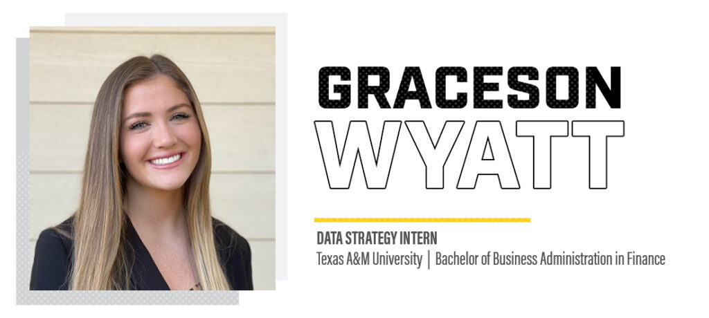 Graceson Wyatt, data strategy intern, works with the Data Strategy and Transformation team to create effective financial processes for the company. She previously interned with the Operations Finance group but was looking to diversify her skillset with new experiences and a new role.