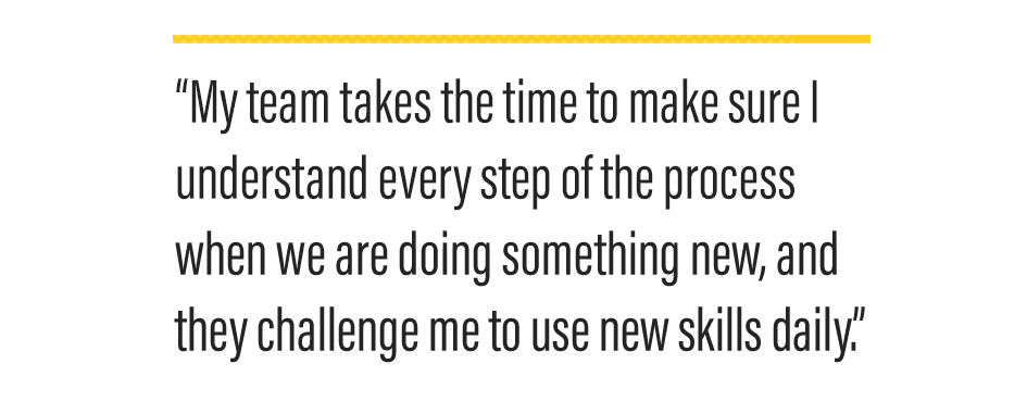 “This experience was extremely rewarding,” said Wyatt. “My team takes the time to make sure I understand every step of the process when we are doing something new, and they challenge me to use new skills daily.”