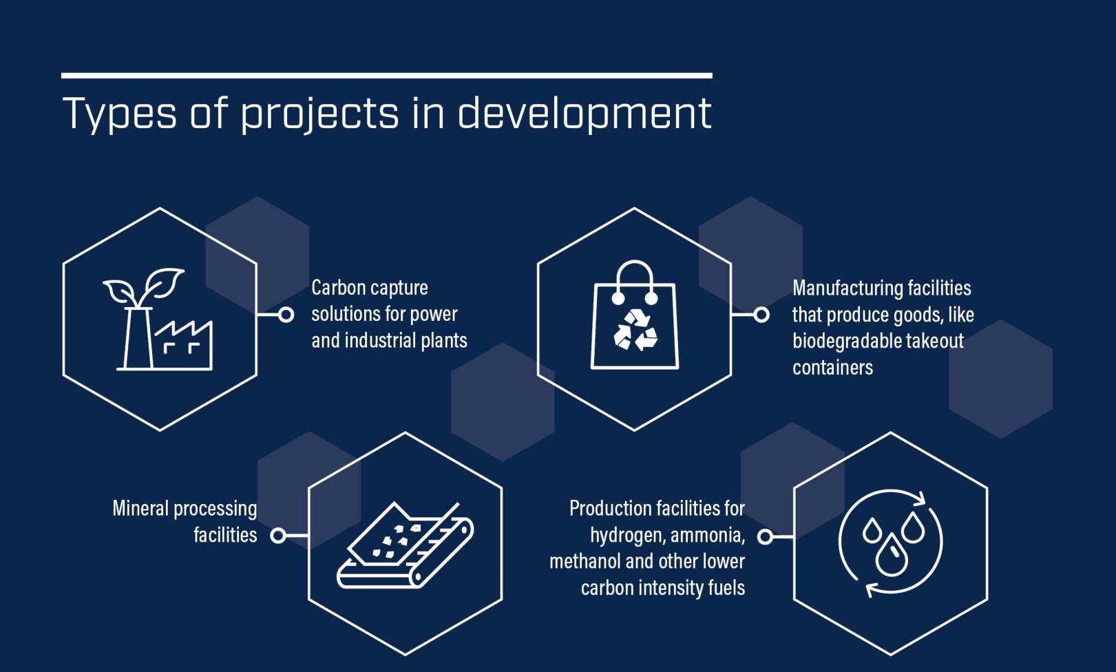 Clients range from some of the largest oil, gas and chemical organizations in the world, to new startup companies. Many of them are looking to develop solutions to further energy transition and sustainability efforts to build a greener economy. Production facilities for hydrogen, ammonia, methanol and other lower carbon intensity fuels; carbon capture solutions for power and industrial plants; mineral processing facilities; and manufacturing facilities that produce goods — like compostable takeout containers — from more sustainably sourced materials are among the many projects Kiewit is supporting.