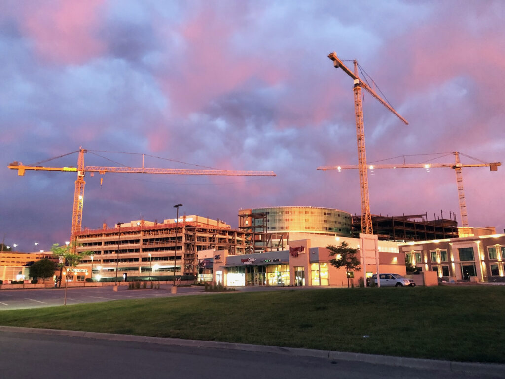“We’re connecting to the existing building on the south and the existing building on the west,” said Construction Manager Al Brodin. “We’re confined by W. Dodge Road on the north, and by the existing loading dock and a 762-stall parking garage, that we’ve built at the same time, on the east.”