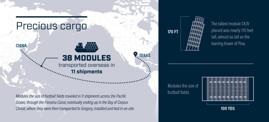 Between the four EPCs, 6,000 construction jobs employed people from all walks of life and backgrounds, bringing them to Gregory, Texas. And, despite a global pandemic that brought much of the world to its knees, the project was able to keep progressing and moving forward.