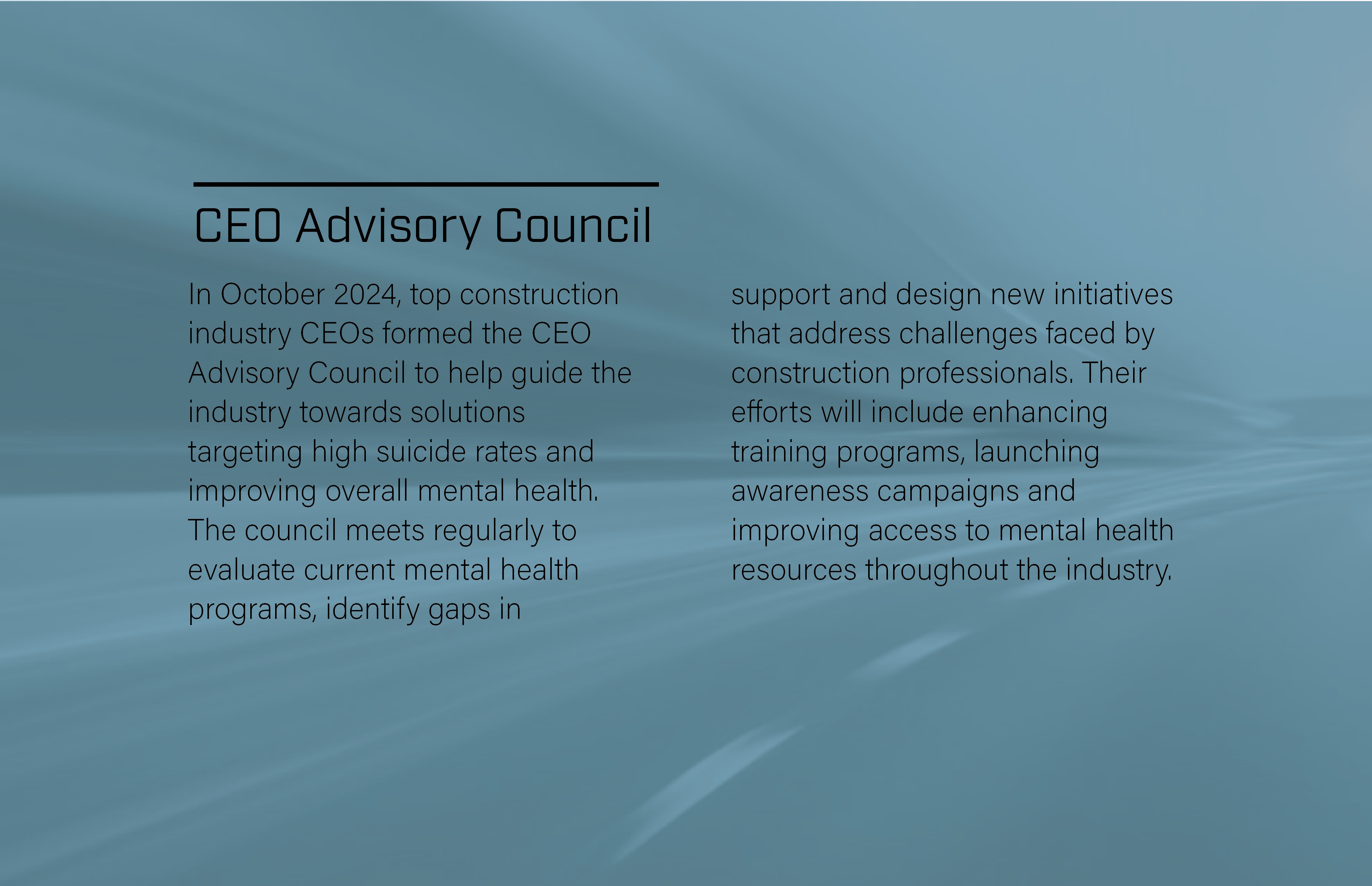 “For years, leadership in the construction industry had very little awareness of the manifestation of mental illness,” he said.