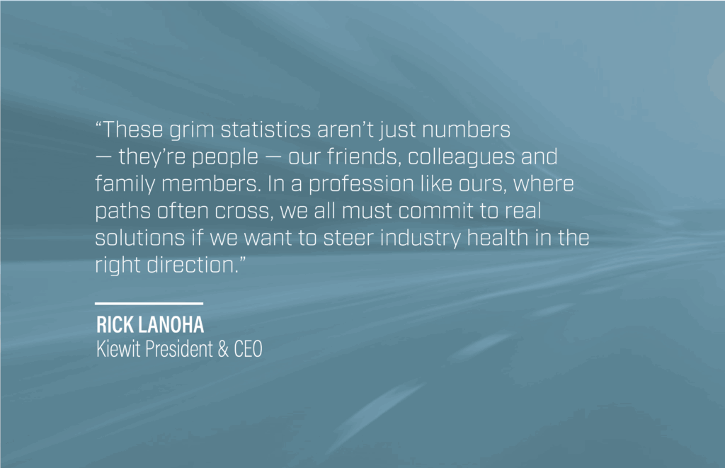 “Kiewit has long been a leader in safety, and my expectations are that we will also lead in mental health focus and awareness,” said President and CEO Rick Lanoha. “This problem isn’t going away, and it requires everyone, in any role, to take the time and show the leadership needed to learn and help.”