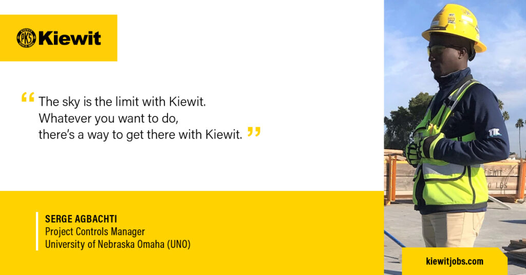 Serge Agbatchi’s Kiewit career got its start in a University of Nebraska at Omaha (UNO) classroom. Two Kiewit engineers held an info session. Afterward, he set up an interview.