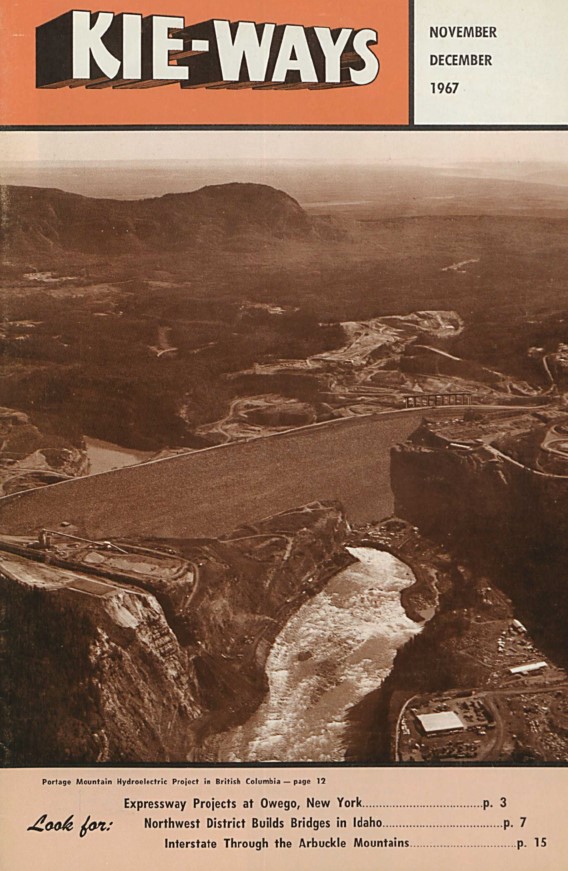 Kiewit crews completed Portage Mountain Dam, the largest hydroelectric project in the Western Hemisphere of its time, in the fall of 1967. Located on the Peace River and nearly 700 miles north of Vancouver, this British Columbia project had a generating capacity of 2,300 MW. Over 57 million cubic yards of fill material were used to construct the dam over a four-year period.