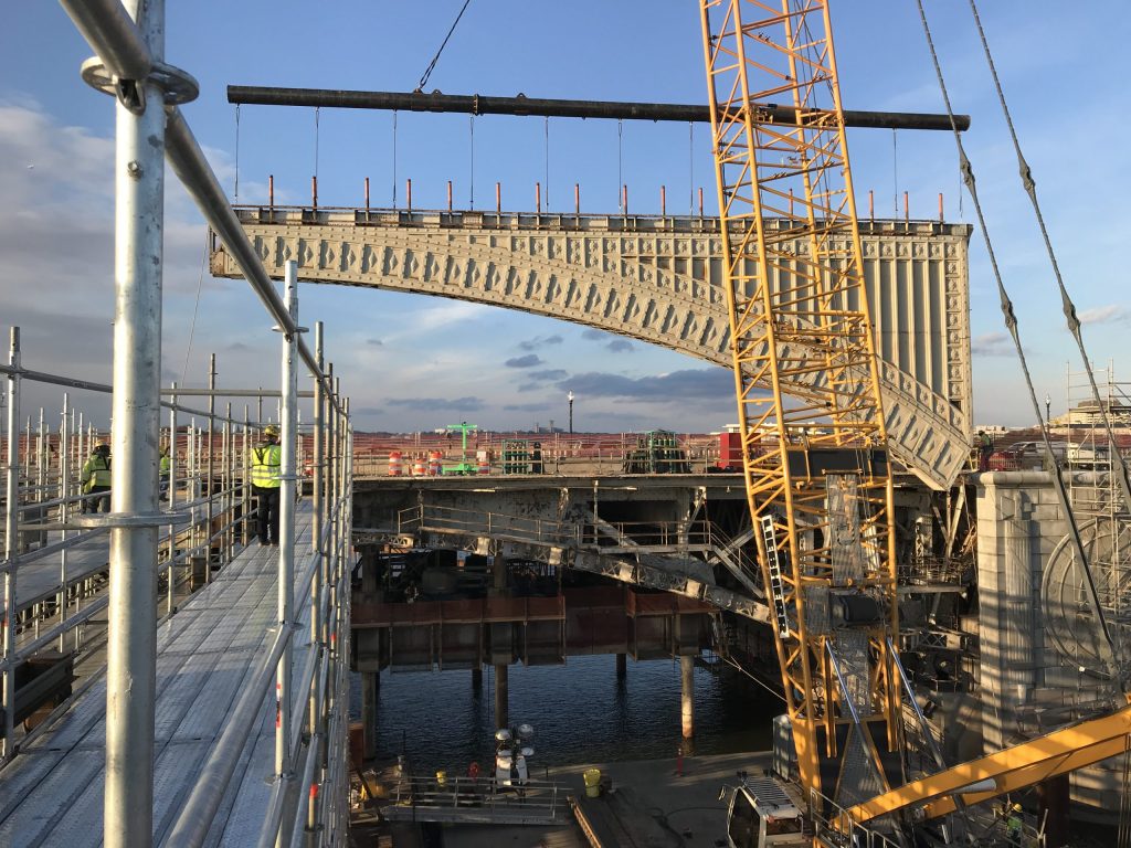 Upon award, Kiewit was requested to reduce the 1,550 day schedule down to 1,000 days including design. Kiewit sequenced the schedule to construct the two approach spans and bascule span concurrently. Our revised schedule greatly reduces impacts to the public in this highly congested area.