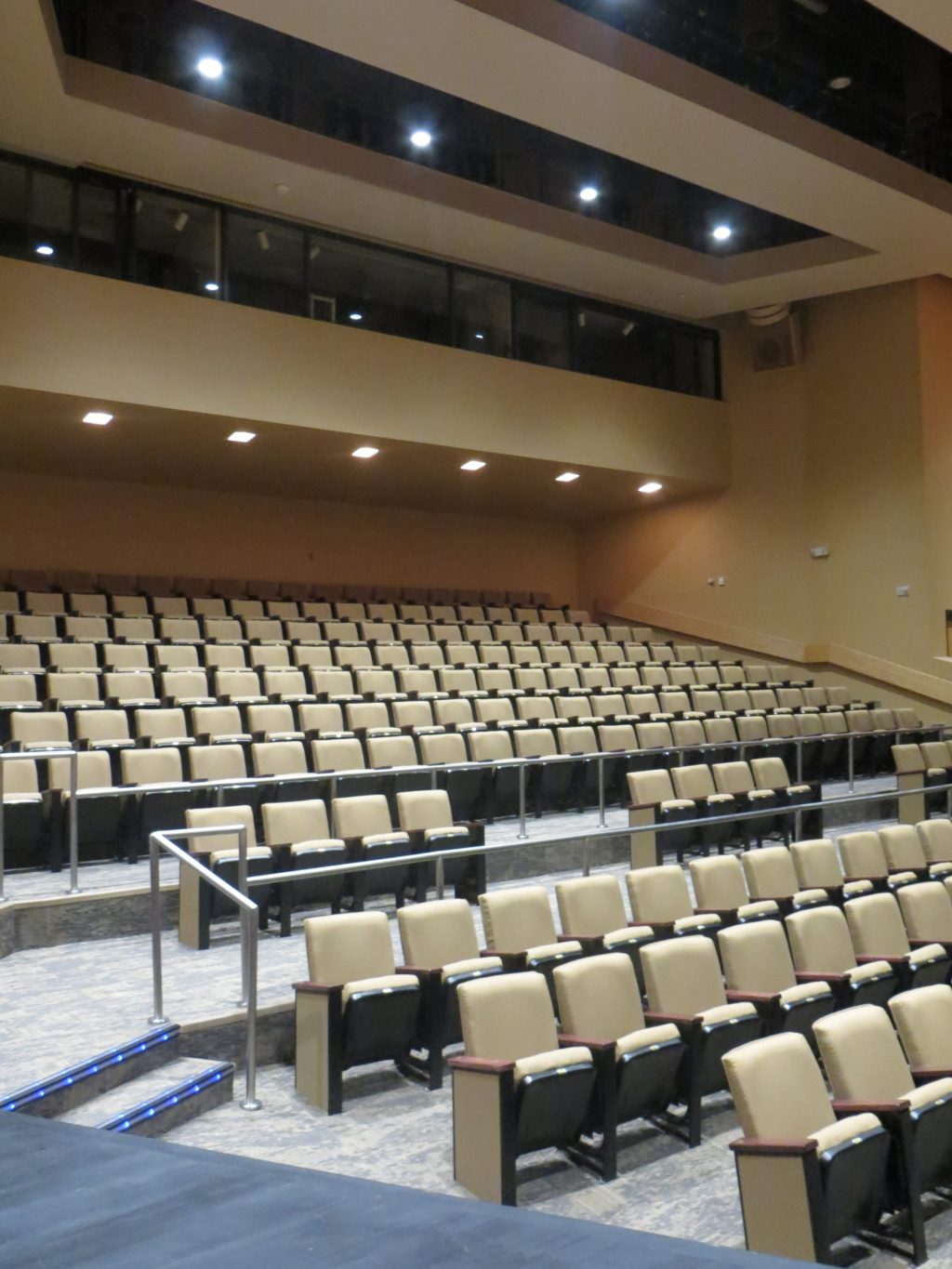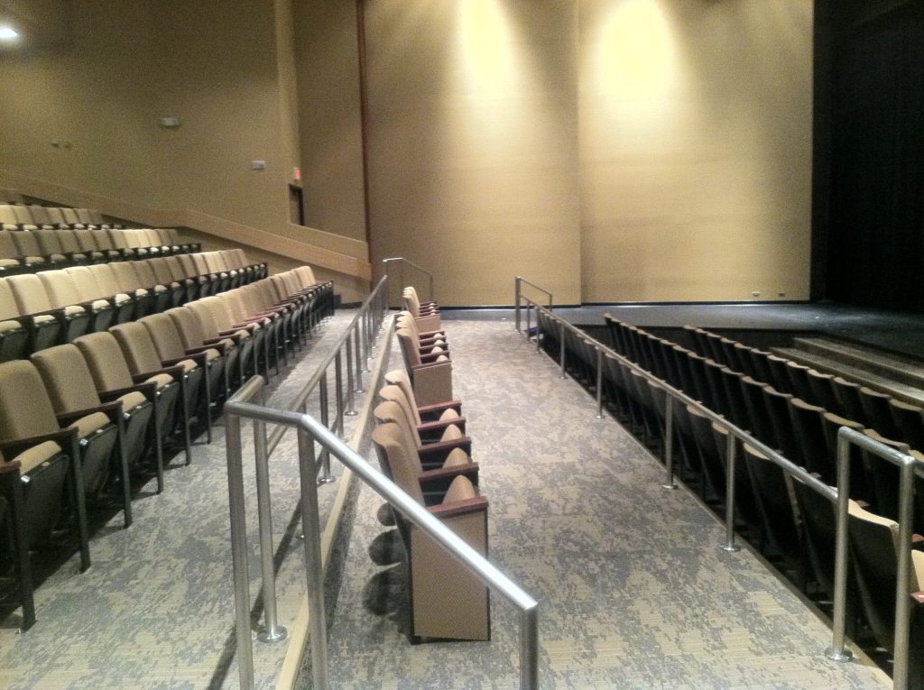 The Clyde H. Wells Fine Arts Center Renovation project modernized and updated spaces, improved energy efficiency, improved accessibility standards, and replaced 80,000 SF of aged flat roof areas. The scope of work included the restoration of the existing theater seating and added new flooring, lighting, wall coverings and window treatments. The auditorium upgrade also included the installation of 745 chairs and all necessary anchors, aluminum number/letter plates, lighting transformers, aisle lights, armrests, seatbacks, and attic stock (spare parts/materials).