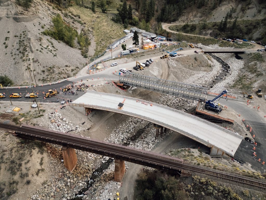When the November 2021 floods devastated British Columbia’s transportation network, the Highway 1 Nicomen River Bridge became a priority for recovery. Located west of Spences Bridge, this crossing was essential for reconnecting communities, freight movement and emergency response. The project was delivered through an Alliance model between Kiewit and the BC Ministry of Transportation and Transit (MoTT). This collaborative structure allowed the team to resolve challenges quickly, make decisions in real time and ensure safe, efficient delivery with long-term resilience in mind.