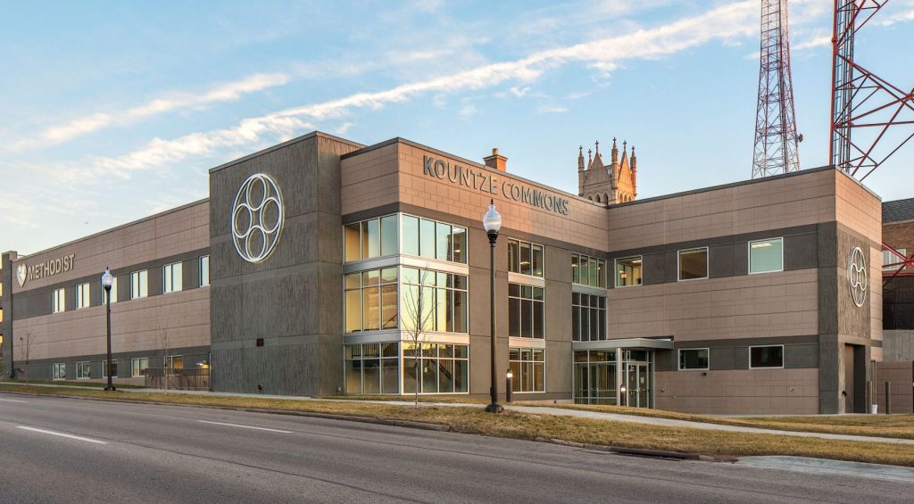 The first floor consists of an area for future clinical offices (Lutheran Family Services), a pre-function space, and an area for the Church’s storage and pantry distribution operations. The second floor consists of clinical space and exam rooms that will be leased and occupied by Methodist Hospital. The Methodist Clinic is approximately 5,000 SF with seven exam rooms, a pharmacy, staff lounge, nurses station, work room, four offices, an education room, and two storage rooms.