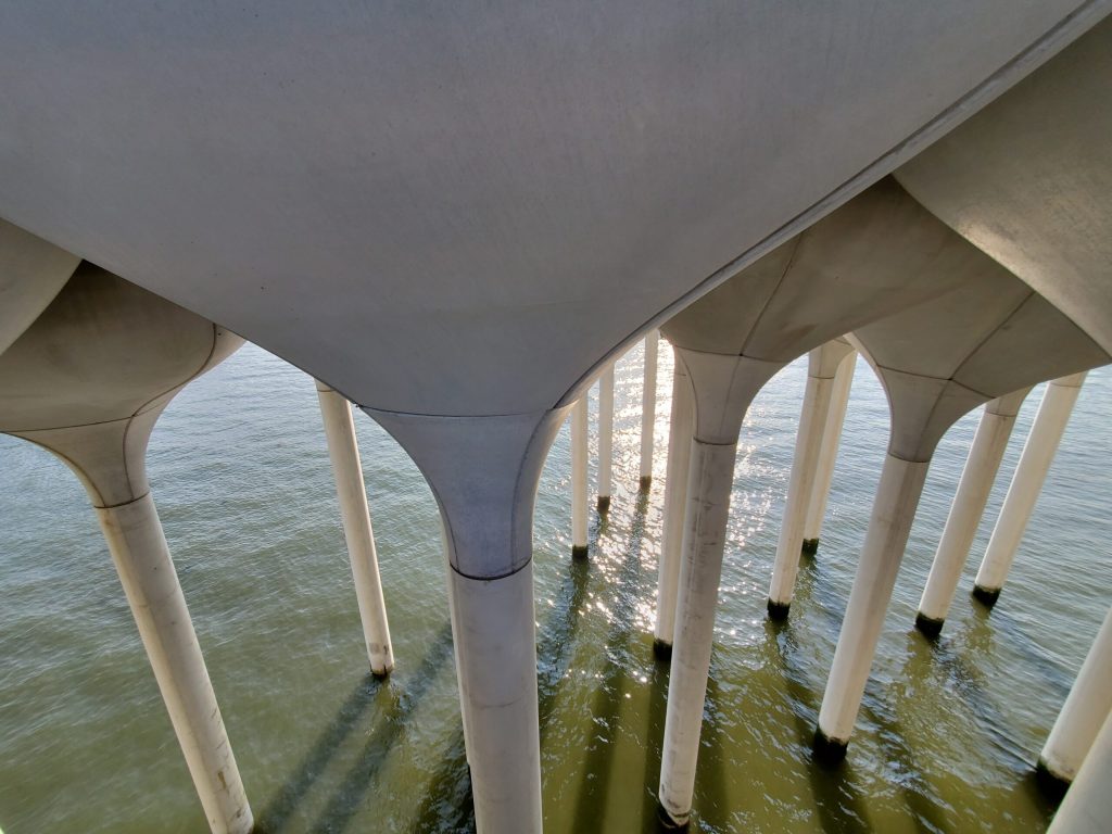 In 2018, Weeks installed 267 cylindrical piles to provide foundational support for the 132 tulip-shaped concrete pots, which give Little Island its distinct aesthetic. The tulip pots range in height from 10 to 30 feet and vary in weight to up to 75 tons. Since no two pots are exactly alike, Weeks developed 132 unique lift plans and engineered custom spreader beams and assembly frames for the erection of the pots.
