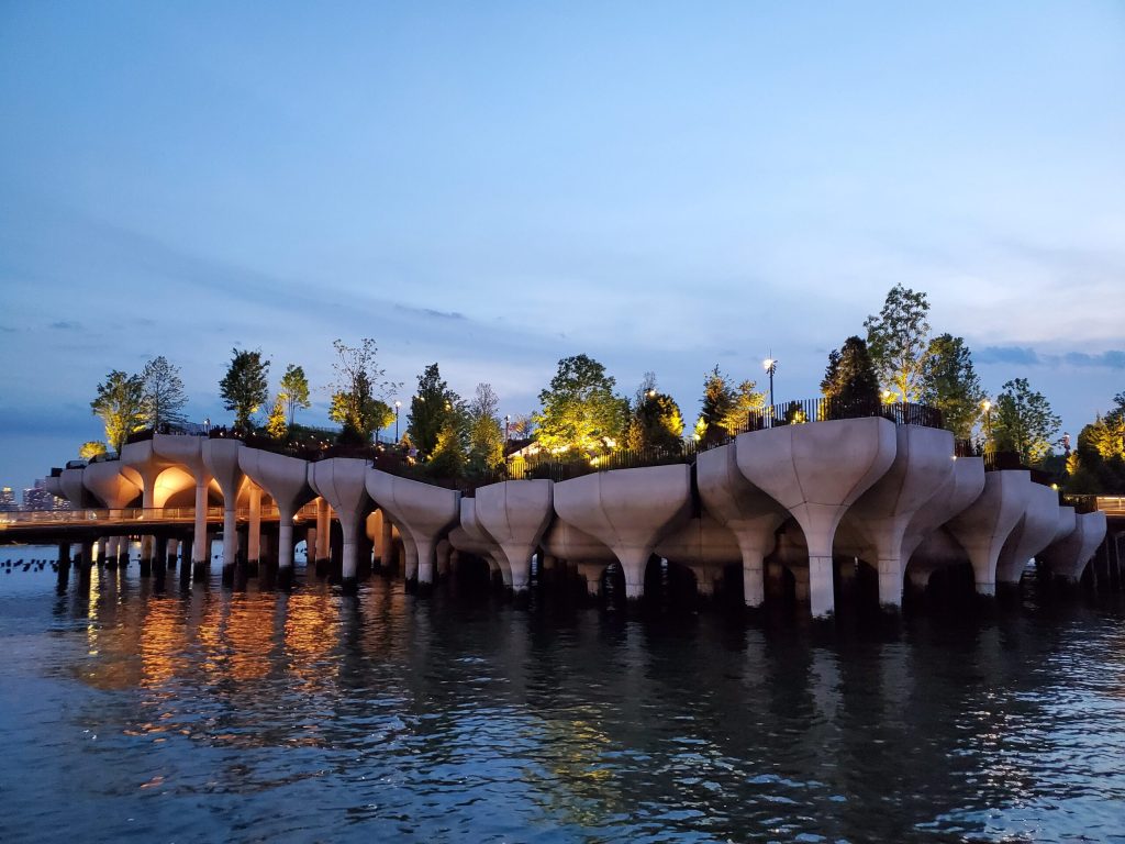 Since its opening in May 2021, Little Island has had over one million people visiting its unique sloping landscapes, seating lawns, pathways and amphitheater. With over 350 species of flowers, trees and shrubs, Little Island provides a gathering space for community engagements with an emphasis on art and educational workshops. This creative public space will have a long-lasting impact on New York City.