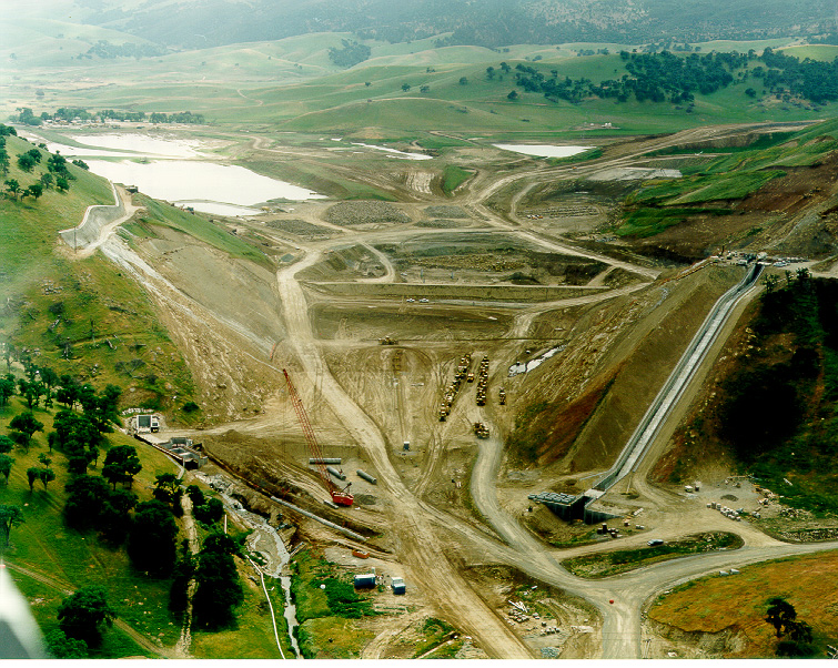 Located in the northern end of the Diablo Mountain Range approximately 40 miles from San Francisco, the Los Vaqueros Dam serves as the primary water source for the Contra Costa Water District. Kiewit provided construction services for this $63 million, 192-foot-high dam. Completed in 1998, the dam measures 1,000 feet across its crest. The scope of work involved construction of 550 feet of reinforced concrete spillway, intake and outlet works, and a 1,300-foot-long, 84-inch-diameter concrete and steel-lined bypass tunnel. Work included a 2.5-mile access road; five 84-inch hydraulic gates on the intake structure; SCADA telemetry; and six rows of blanket and curtain grouting on the dam’s base.