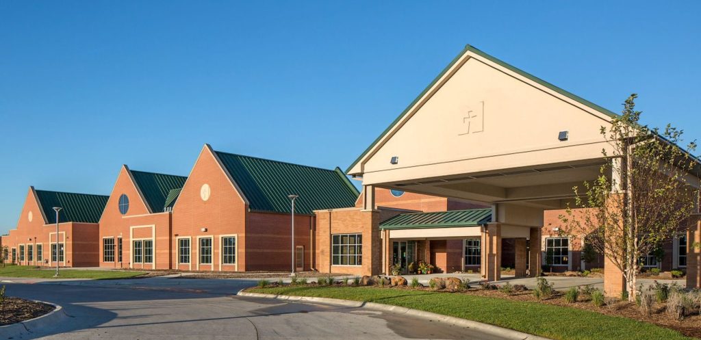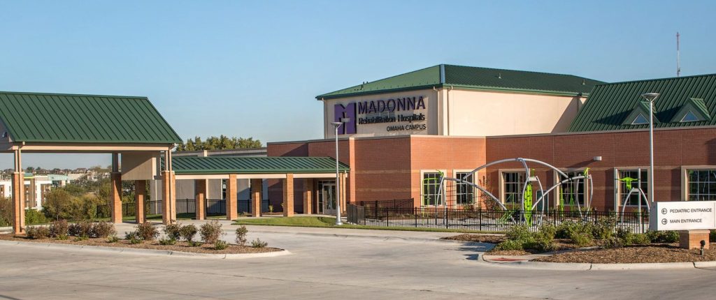 The Madonna Rehabilitation Hospital is a 260,000 SF hospital, located on a 20.6-acre site. It is a 110 bed, state-of-the-art rehabilitation hospital that is split into a 48-bed specialty hospital, a 48-bed acute rehabilitation hospital, and a 14-bed children’s rehabilitation unit. Madonna Rehabilitation Hospital also has three separate therapy gymnasiums, a warm water therapy pool, and an independence square, or “simulated community” that are all used specifically for rehabilitation. Madonna Rehabilitation Hospital also supports both outpatient and inpatient rehabilitation, as they have their own outpatient clinic located on the main level.