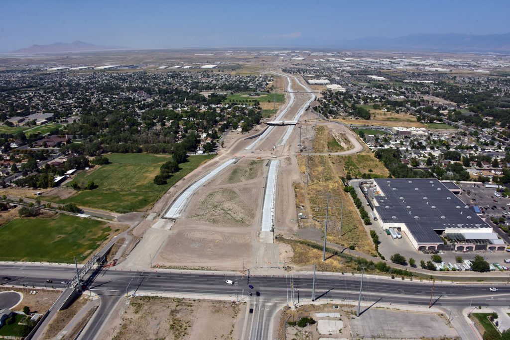 This Project (known as Segment 7 & 8) consisted of constructing 3.1 miles of two lane future freeway construction in each direction from 4100 South to SR-201 and ramps to California Avenue. It also included intersection improvements at 3500 South and 5600 West along with 5600 West and California Avenue. Additional elements included construction of a service interchange at SR-201, including reconstruction of 5600 West ramps at SR-201 and replacing the deck at the 5600 West structure over SR-201, reconstruction of SR-201 north and south frontage roads and widening of SR-201.