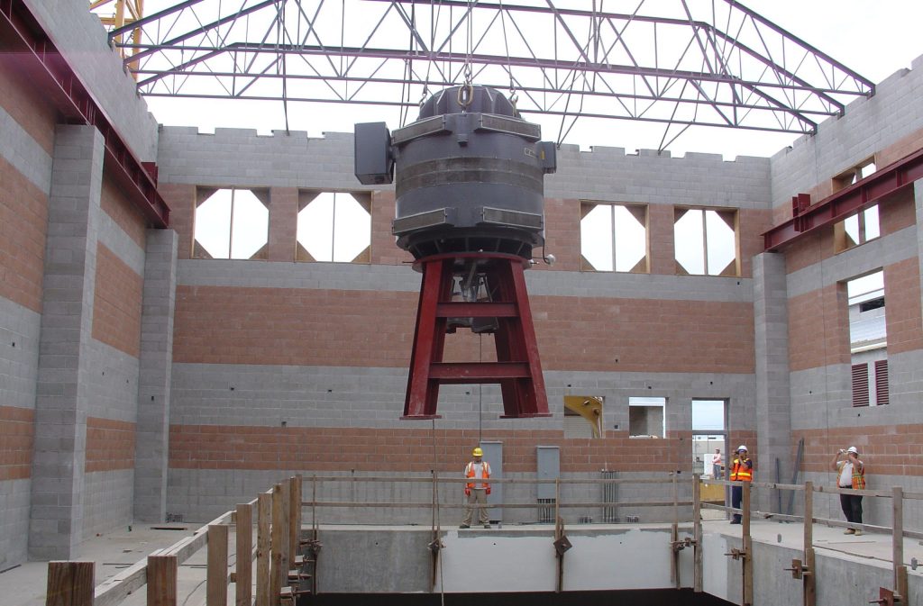 The two identical pumping stations are located at the northern end and about midpoint on the pipeline. Working at a depth of 80 feet, crews pumped groundwater from the excavation site at a rate of 14 million gallons per day to enable construction. The scope of work at each site involved excavation support, dewatering, constructing new below-grade and at-grade concrete structures, installing mechanical equipment. In addition, the project scope involved the erection of a steel truss roof, concrete masonry unit block buildings, installing electrical and control equipment, and constructing odor control facility.