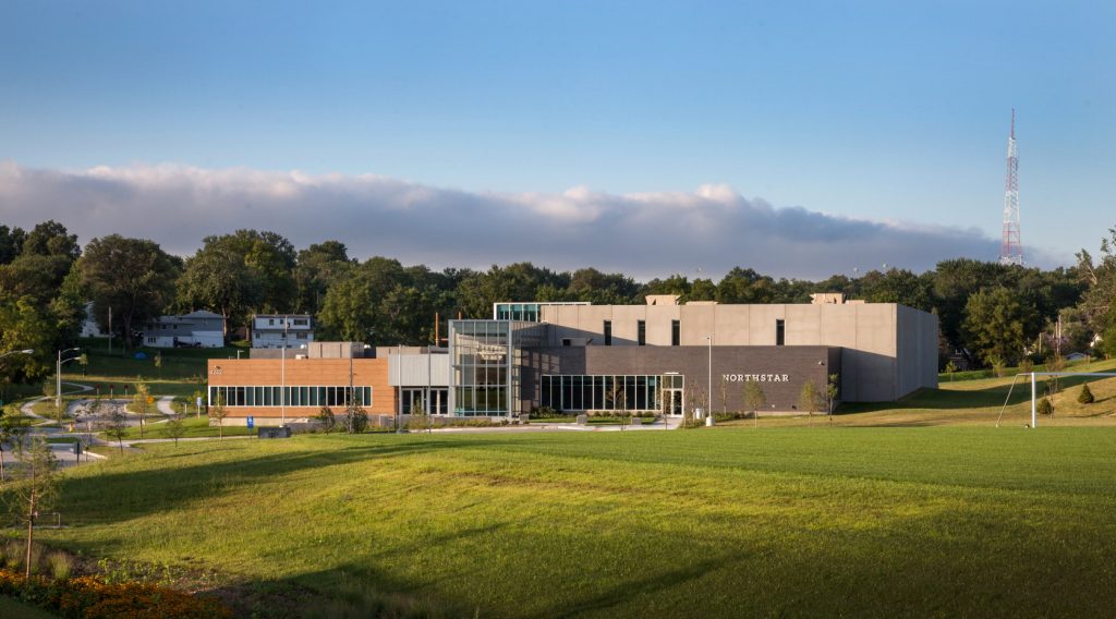 NorthStar looked to Kiewit to build its 32,000 SF single-story building and 15-acre site improvements project. The building is a combination of office, educational, and athletic spaces. The building features a 13,200 SF gymnasium and two-story indoor climbing wall. The site work included the construction of rainwater collection basins, athletic playing fields, parking lots, and landscaping.
