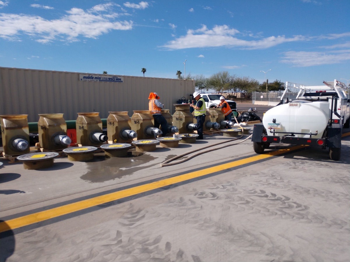 The existing pavement section in the Terminal 3 North Inner Apron had 15-inch Portland Cement Concrete Pavement (PCCP) reinforced with welded wire mesh with light, medium and heavy linear cracking, medium to large patching, some faulting, scaling, shrinkage cracking, and failed joint seal. This project removed and replaced the existing pavement structure, approximately 1,630 panels with a total area of 43,600 square feet, surrounding the Terminal 3 North concourse. The hydrant fuel system underneath the inner apron was also upgraded as well as storm drain and trench drain systems to collect inner apron and roof drain runoff.