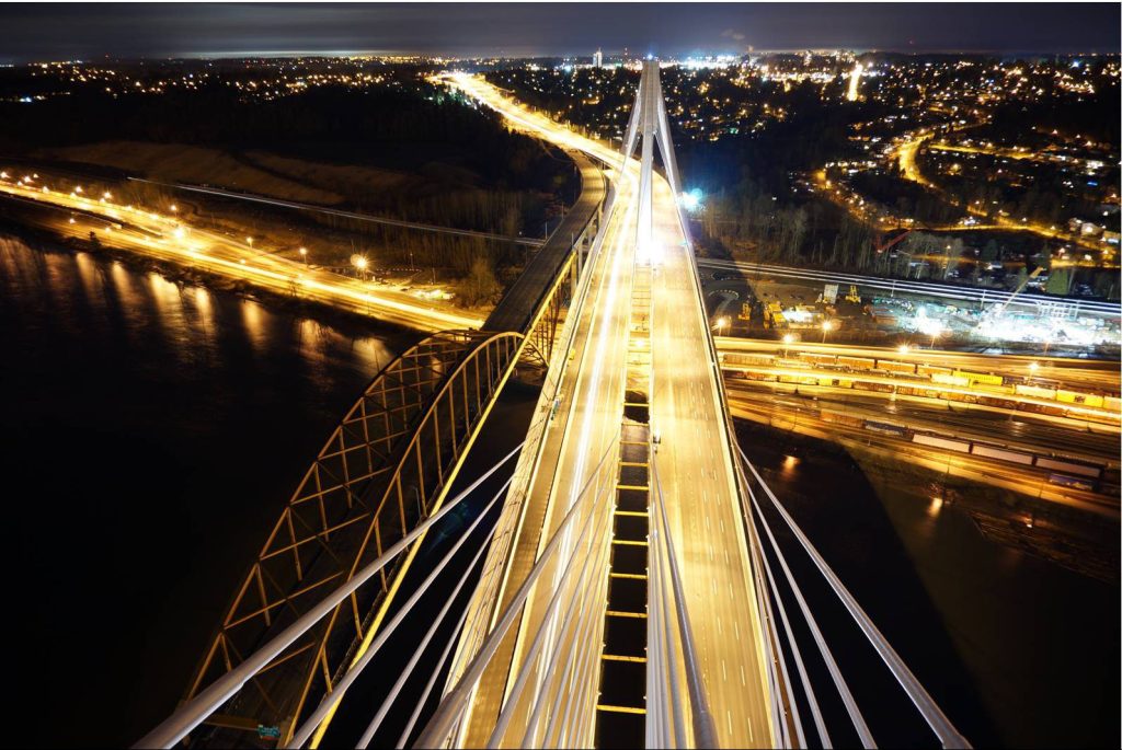 Kiewit led the design-build joint venture (72.5%). The scope of work for the project included construction of a 37 km section of the Highway 1 corridor, adding one lane in each direction west of the new Fraser River Crossing and two lanes in each direction east of the crossing with significant upgrades to 12 interchanges. This massive project included the construction of a new 10-lane cable-stay bridge crossing the Fraser River, replacing the existing Port Mann Bridge which was then demolished.