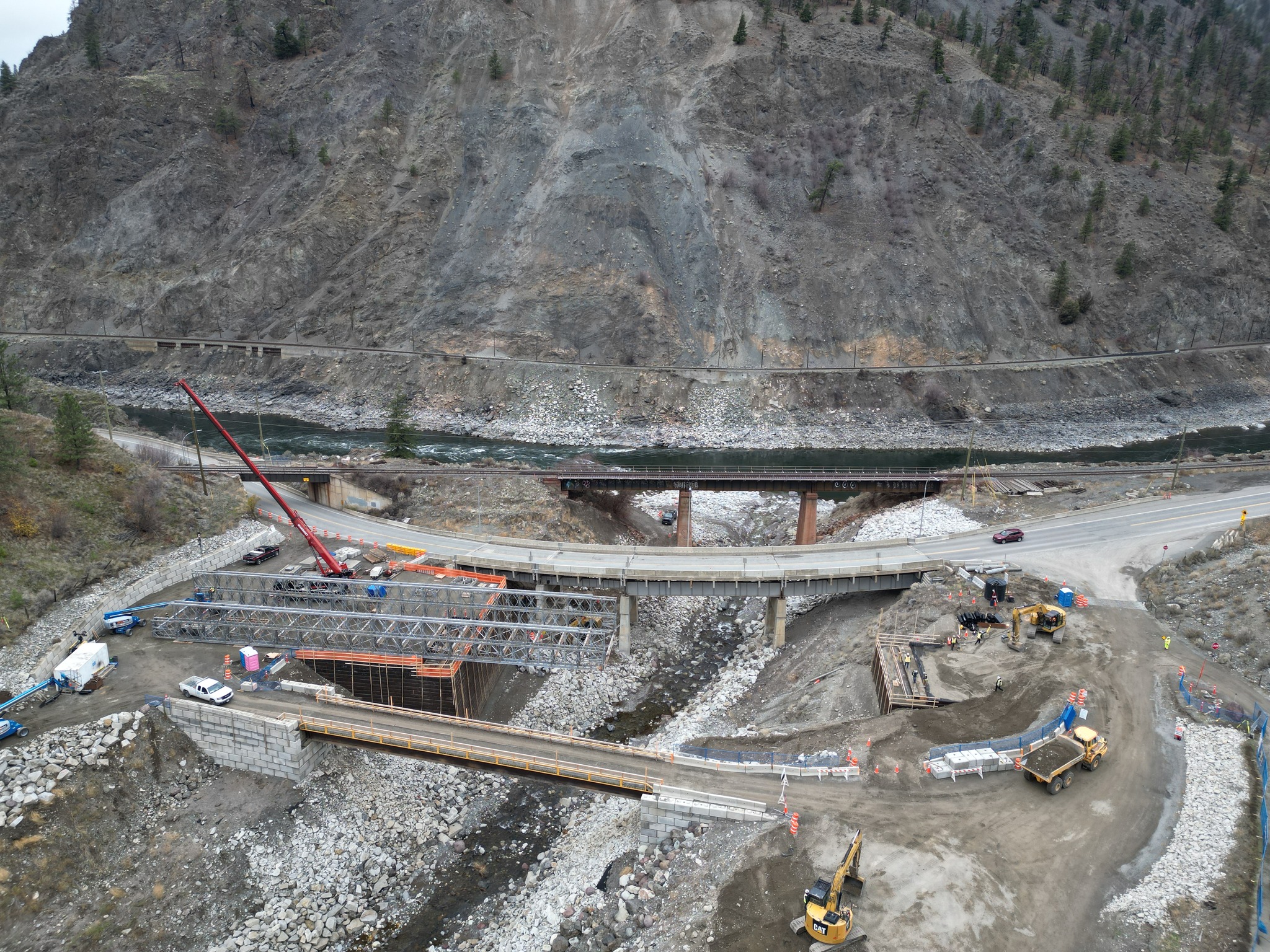 Cuando las inundaciones de noviembre de 2021 devastaron la red de transportes de la Columbia Británica, el puente sobre el río Nicomen de la autopista 1 se convirtió en una prioridad para recuperación. Situado al oeste del puente Spences, este cruce era esencial para reconectar las comunidades, el movimiento de mercancías y la respuesta a emergencias. El proyecto se ejecutó mediante un modelo de alianza entre Kiewit y el Ministerio de Transporte y Tránsito de Columbia Británica (MoTT). Esta estructura de colaboración permitió al equipo resolver los retos con rapidez, tomar decisiones en tiempo real y garantizar una entrega segura y eficaz pensando en la resistencia a largo plazo.