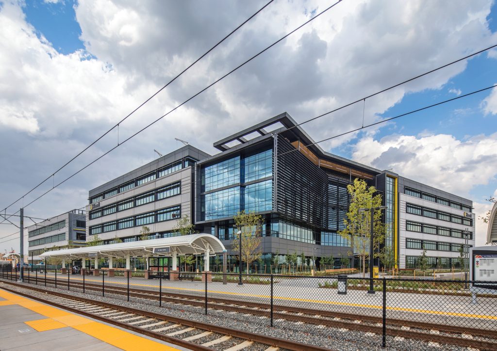 The RidgeGate Campus Project consists of two new office buildings for various Kiewit Companies in Lone Tree, Colorado. Combined, the two buildings provide 400,000 SF of office space with a roof deck gathering space, a full-service café, a full service coffee shop, a full service catering/kitchen system and fitness center. In addition to the new buildings, a new 970-stall, precast parking garage will also be erected. The new headquarters will be adjacent to the Sky Ridge Light Rail Station, which is one of three new stations for the Regional Transportation District’s Southeast Rail Extension.
