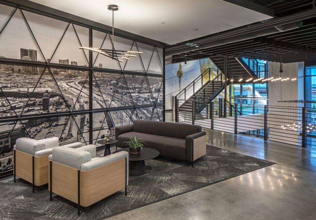 Both of the office buildings will include a demountable partition office wall system. The system will provide a customizable end user experience allowing for greater collaboration efforts and transparency for the Kiewit employees working here. Also featured are various building elements including partially exposed mechanical and electrical systems, spray applied fire resistive materials and open stairways in each building’s main lobby.