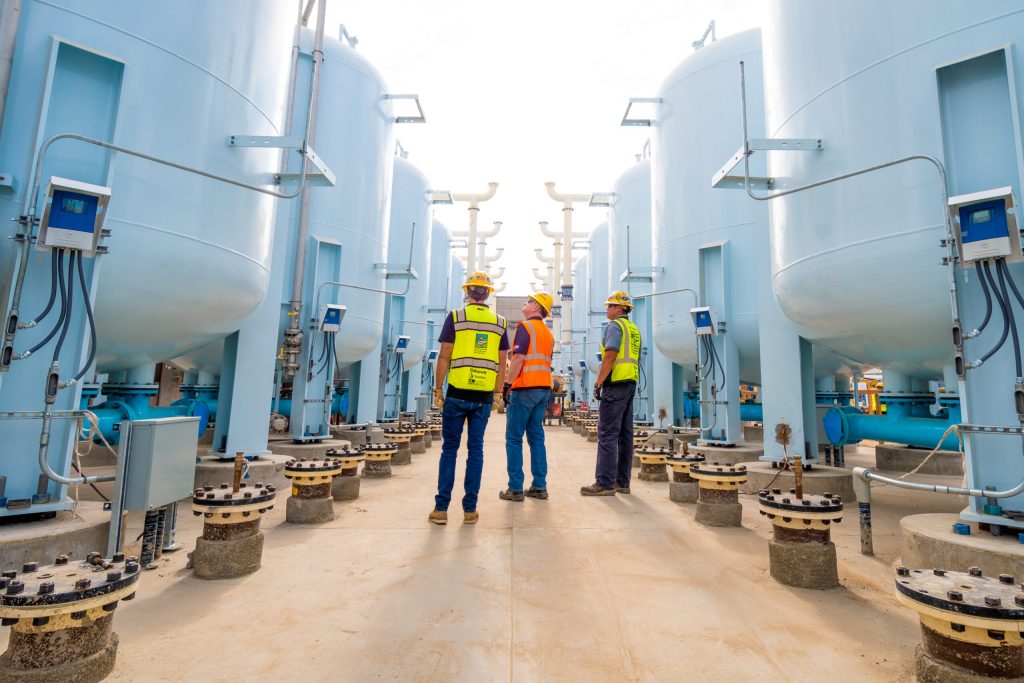 The treatment facilities contain pre-treatment automatic strainers, 10 largest-of-their-kind ultraviolet (UV) advanced oxidation process (AOP) reactors, 54 granular activated carbon (GAC) vessels and post-treatment dosing for chlorination, ammonization and fluoridation.