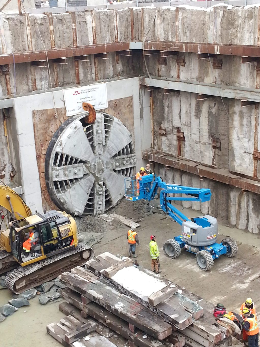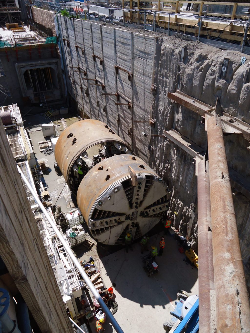 The project consisted of twinned 1,540 meter and 1,185 meter long PCTL (precast concrete tunnel lining) tunnel drives, cast in place concrete invert and tunnel walkways, three emergency exit buildings (EEBs), four cross passages and associated works. Two custom manufactured EPB tunnel boring machines (TBMs) were supplied by the TTC and manufactured by Caterpillar Tunneling Canada with bore diameters of 6 meters. Each tunnel was lined with precast concrete rings, also supplied by the TTC. The Southern Tunnels required approximately 3,650 rings; each ring consisting of six segments and weighing approximately 13 tons.