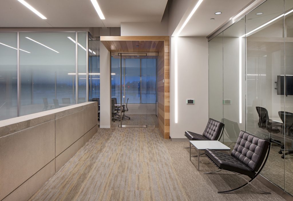 Tenaska’s new 96,144 SF, Class A corporate headquarters sits on five acres. The building incorporates sustainable features, including a green design that utilizes natural light.