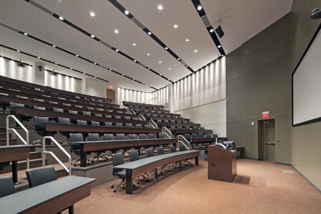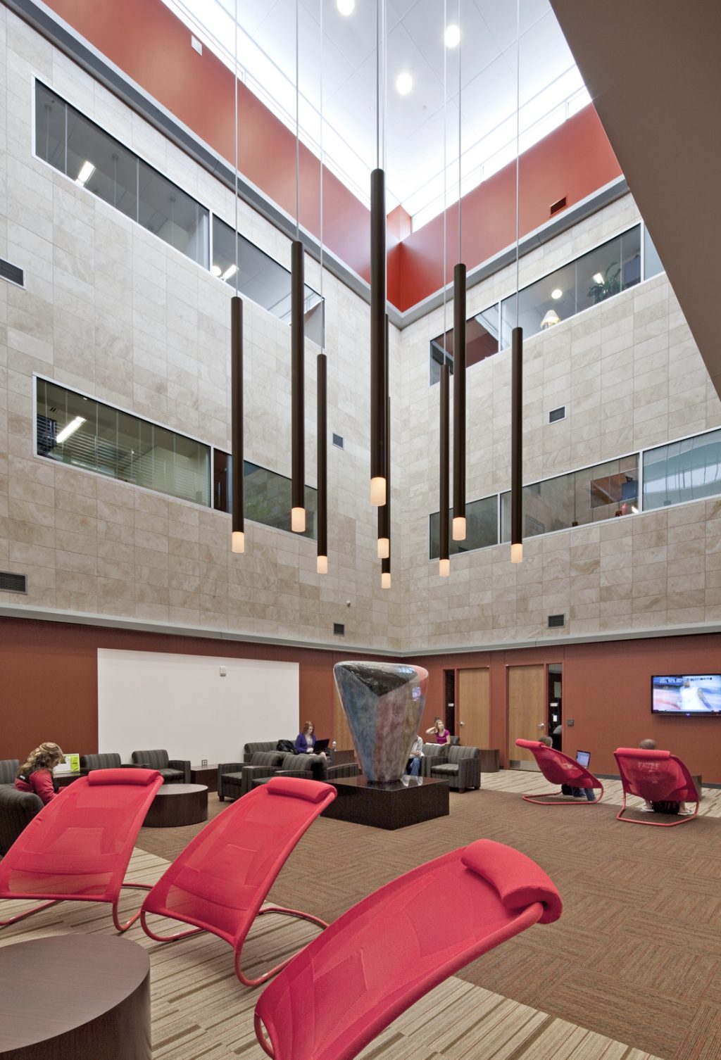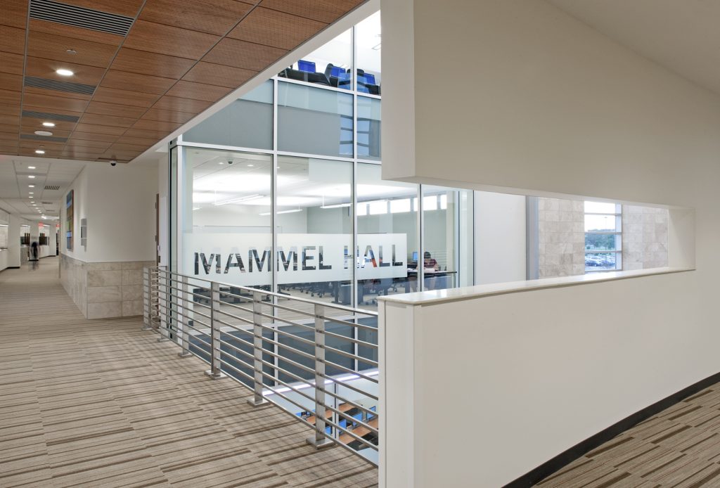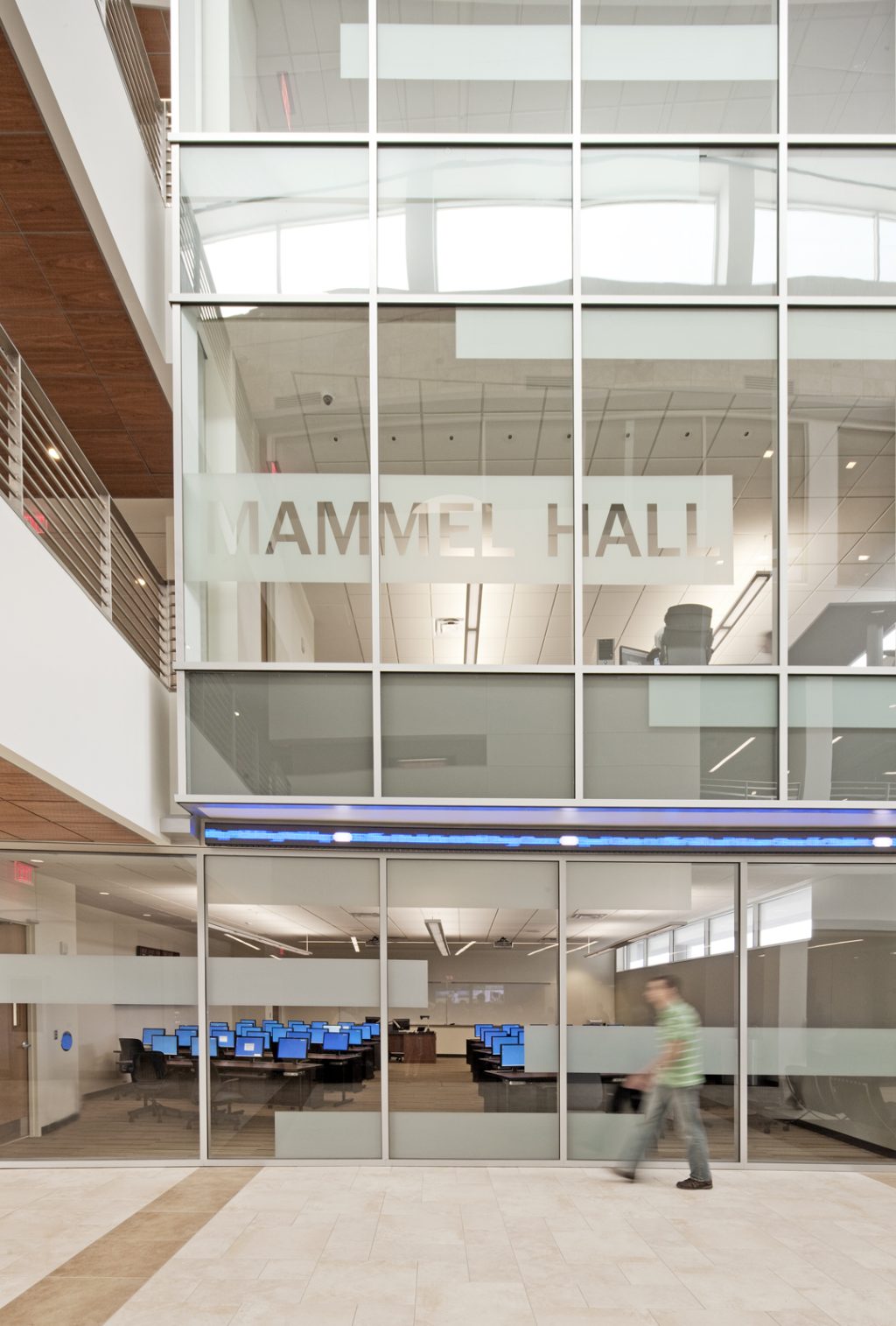 This three-story, 120,000 SF facility was built to serve as the home of the University of Nebraska Omaha’s College of Business Administration. Featured spaces in the building include a virtual stock market trading room, laboratories dedicated to statistics, real estate and business innovation, a corporate-style boardroom, and computer laboratories and offices for the Nebraska Business Development Center. The building provides an increased number of classrooms, a 200-seat auditorium, multiple collaboration areas, and improved faculty offices for increased interaction with students. The structure itself is a combination of brick, metal and glass. Landscaping features a “rain garden” design that enhances the environment by reducing the amount of storm runoff and incorporating native drought-tolerant plants and flowers.