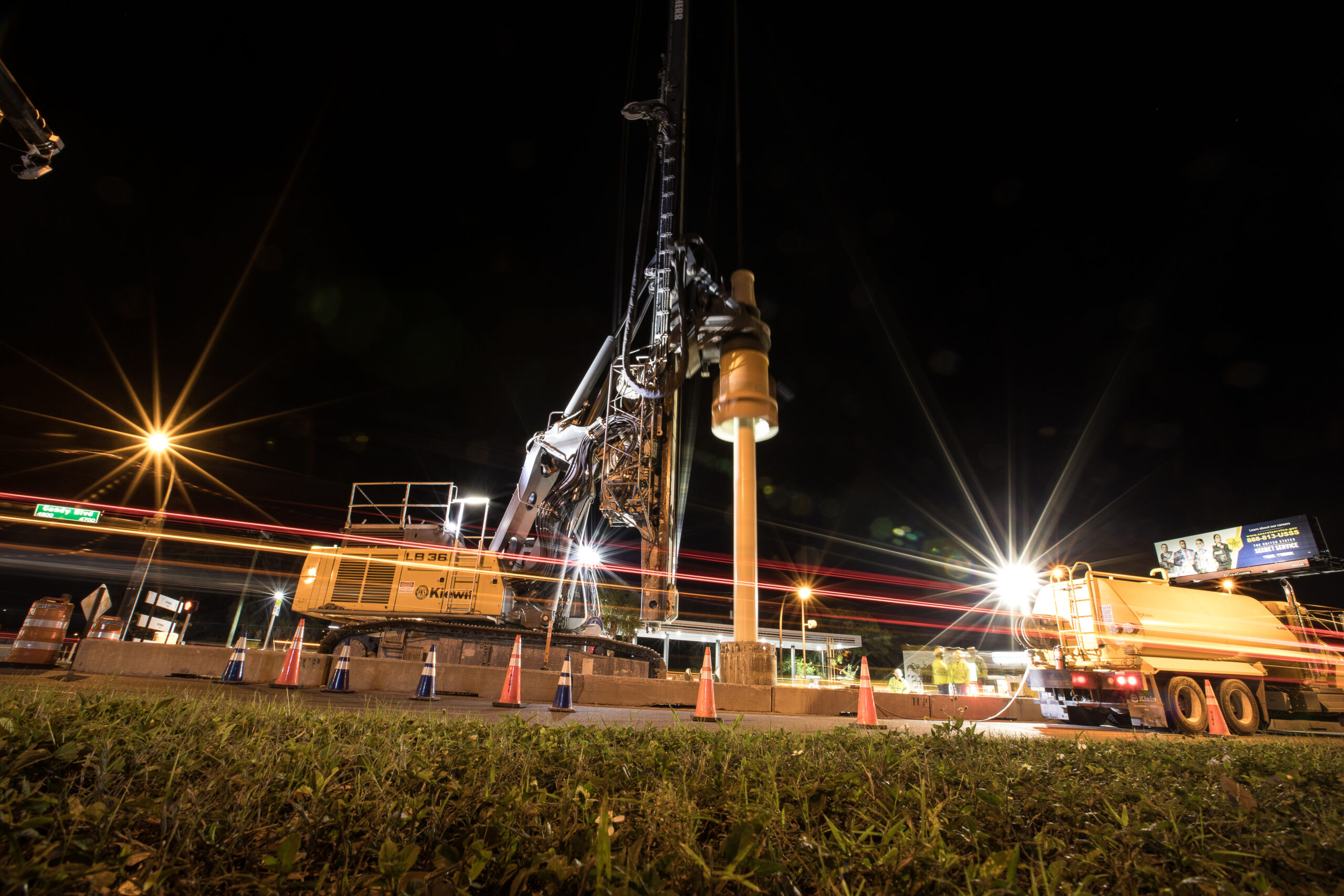 Kiewit Foundations’ equipment fleet includes a full range of hydraulic top drive rotary drills, up to operating weights of 250 tons. Paired with our comprehensive list of specialty tooling such as grabs, clamshells, augers, buckets, segmental casing, displacement and mixing tools, Kiewit Foundations can install the following to multiple depths and diameters: